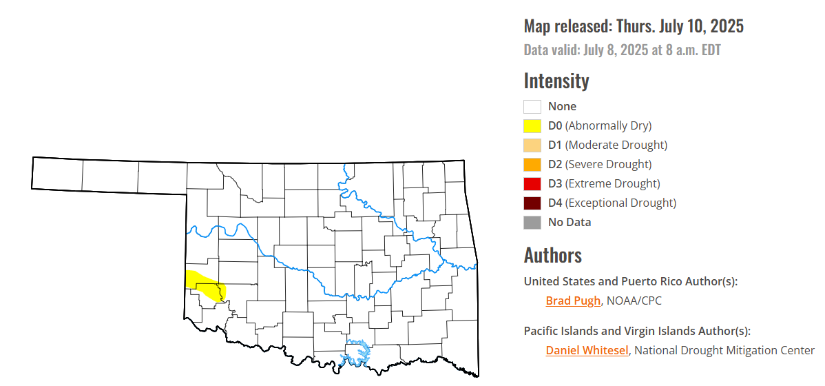 Abnormally dry or worse conditions have emerged this week in parts of Greer county, Beckham county and Kiowa county.