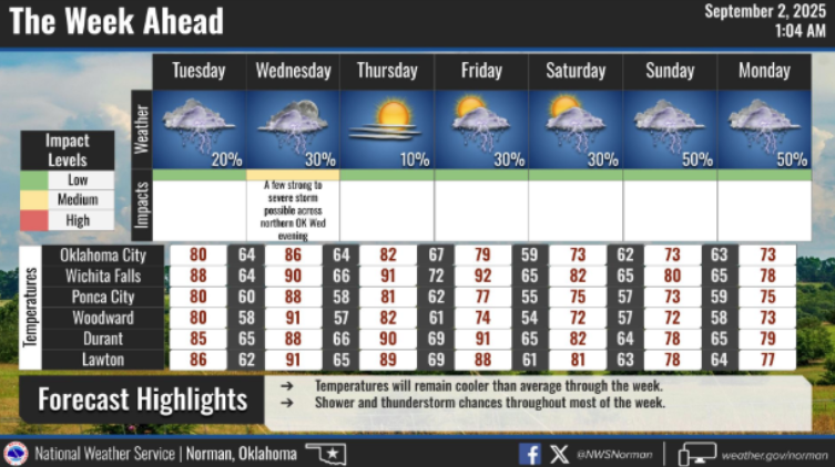 According to State Climatologist Gary McManus, August 2025 delivered a surprise to Oklahomans, wrapping up the summer with an unseasonably cool and wet finale. Instead of the usual late-summer heat, two strong cold fronts moved through the state, bringing fall-like conditions that broke multiple weather records. The final week of the month saw a notable chill and steady rainfall, marking the end of summer much earlier than expected.