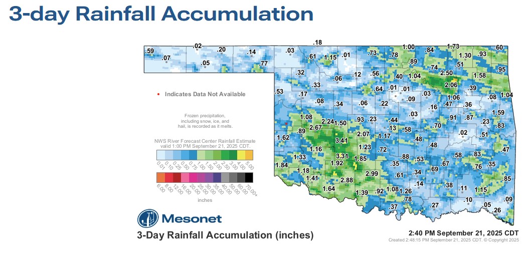 A big storm system made its way across Western Oklahoma this weekend that gave Apache 2.52" of much-needed rain, Altus with 1.18", Weatherford with 1.85", Ft. Cobb came in with 2.55", and portions of Tulsa got 2.14". Western Oklahoma had previously missed the rain, so this was a nice drink of water.
