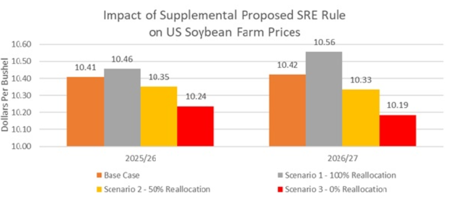 Clean Fuels Alliance America shared with EPA Administrator Lee Zeldin projections of the economic impact for U.S. soybean farmers and processors of EPA’s proposed supplemental “SRE reallocation volume” to the 2026 and 2027 RFS volumes. EPA is co-proposing to either fully (100%) or partially (50%) account for 2023-25 small refinery exemptions granted this year by adding a supplemental volume in 2026 and 2027.