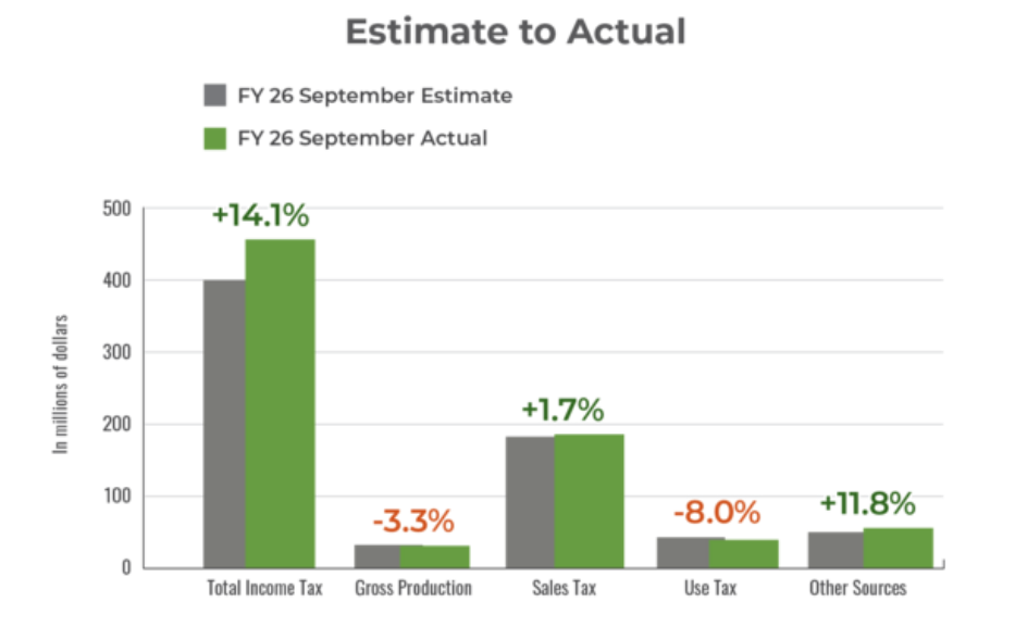 GRF collections for the first three months of fiscal year 2026 stand at $2.0 billion. This is $108.2 million, or 5.8%, above the year-to-date estimate and $8.0 million, or 0.4%, above collections from the same period in FY 2025. “Oklahoma continues to demonstrate that strong leadership and a resilient economy create an exceptional place to live, work and invest,” said Oklahoma’s Chief Operating Officer David Ostrowe.