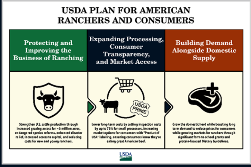 “America’s food supply chain is a national security priority for the Trump Administration. We are committed to ensuring the American people have an affordable source of protein and that America’s ranchers have a strong economic environment where they can continue to operate for generations to come,” said Secretary Brooke Rollins. “At USDA, we are protecting our beef industry and incentivizing new ranchers to take up the noble vocation of ranching. USDA will immediately expedite deregulatory reforms, boost processing capacity, including getting more locally raised beef into schools, and work across the government to fix longstanding common-sense barriers for ranchers like outdated grazing restrictions.”