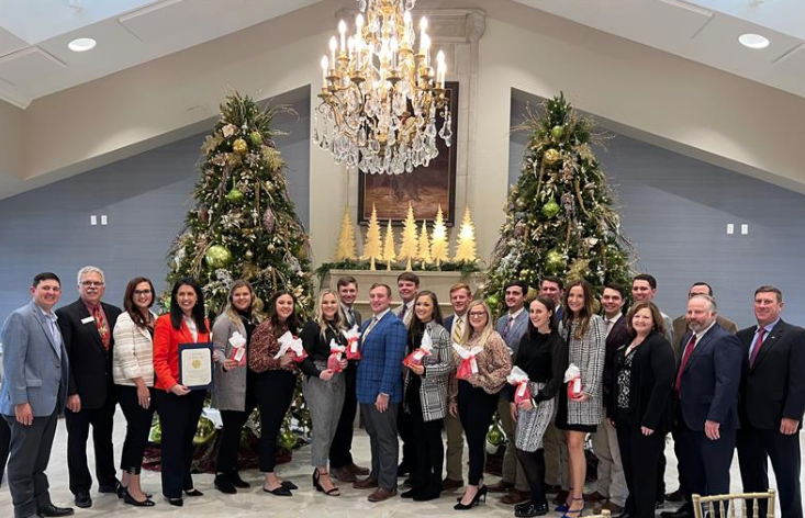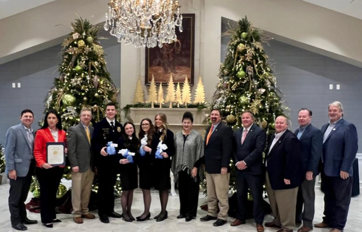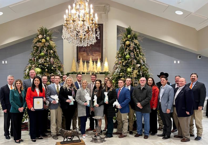 At the Governor’s Mansion on December 6, the Oklahoma State University, NOC and Tuttle FFA livestock judging teams were all recognized for winning national championships this year. KC Sheperd, Farm Director, attended the event and got the chance to visit with Ag Secretary Blayne Arthur, and the Northern Oklahoma College livestock judging coach Jennifer Bedwell, about this outstanding group of youth and young adults.