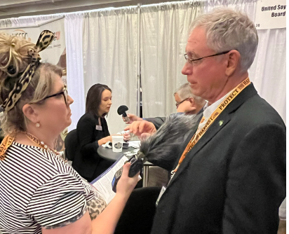 KC Sheperd, Farm Director, is visiting with the Director of the United Soybean Board and U.S. Soybean Export Council, Lance Rezac, about innovation within the U.S. soybean industry.