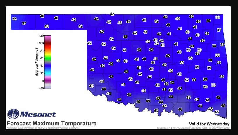 McManus says to Watch for upgrades and downgrades later today to a Winter Storm Warning, as well as some counties coming in and out of both advisories, “There is a lot of moisture available for this storm, so regardless of whether we see lots of snow or just a really really cold rain–or a mix–this will be very beneficial moisture for most of the state, save for the Panhandle and far northern OK.”