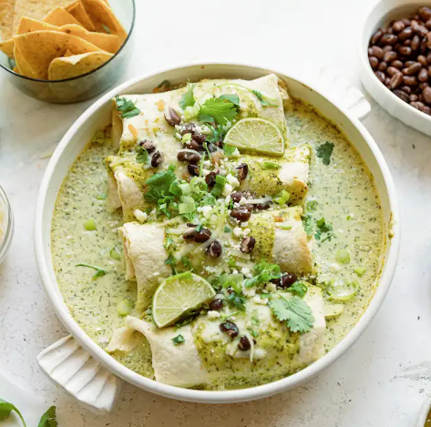Pork and Black Bean Enchiladas with Green Chile Sauce