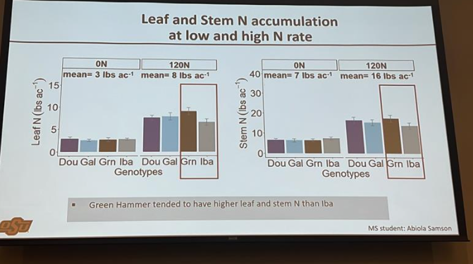 Green Hammer that has a larger protein and yield than Iba, showed that it has a higher accumulation of nitrogen in the stem and leaf, especially later in the growing season.
