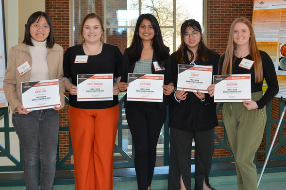 During the Gilliland Awards Luncheon, five students were honored with the Stanley E. Gilliland Memorial Fellowship in Food Science, a memorial fund established to provide scholarships for food science students. Graduate students Sitong He, Jessie Payne, Kaylee Rumbaugh, Xin Mei Teng and Kavya Gavai were each presented with a $1,000 scholarship.