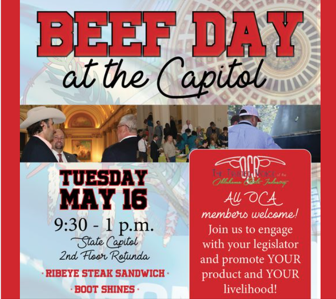 “Beef cattle is Oklahoma’s #1 Commodity adding over $3 billion to the Oklahoma economy annually,” said Michael Kelsey, OCA Executive Vice President. “It’s important for us to educate our elected officials that beef is more than just what’s for dinner here in Oklahoma!”