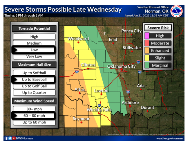 Below, see the next 7 day forecast and 4-Day Rainfall Accumulations recorded by the Oklahoma Mesonet. The next Oklahoma Harvest Report will be published on Monday, June 26, 2023, and a regional report will be published by Plains Grain Inc. on Friday, June 23, 2023.