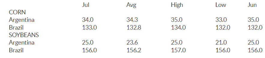 New crop ending stocks were pegged at 2.262 bb, up 5 mb from June’s forecast.