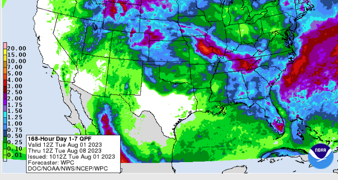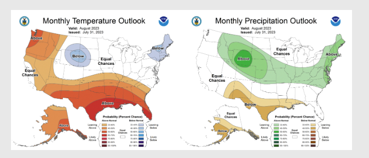 Thanks to the timely rains drought coverage in Oklahoma Dropped throughout the state from 36: a the end of June to around 18% at the end of July, ” Still, those regions remained in severe to extreme drought, exacerbated by longer-term deficits that stretch back to August 2021 and amplified by the summer of 2022’s disastrous flash drought. The Climate Prediction Center’s August outlooks show increased odds for above normal temperatures across the entire state, and above normal precipitation across far north central Oklahoma. CPC’s corresponding August drought outlook sees it being relieved—and partially eradicated—across the area of drought in northern Oklahoma, but persisting across far southwestern sections of the state. However, no new areas of drought are expected to develop through August.”