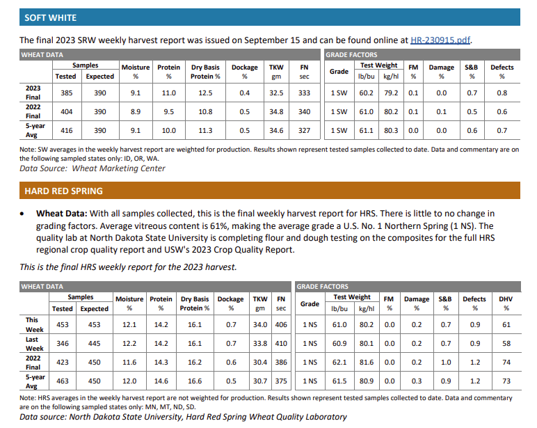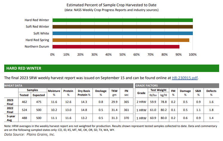 All HRS samples are now at North Dakota State University being processed. The 2023 HRS crop grades a U.S. No. 1 Northern