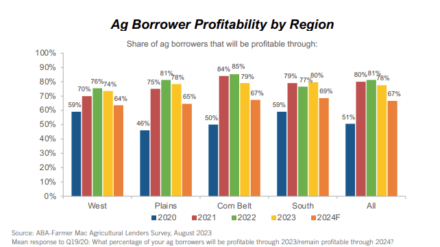 “Despite margin compression, agricultural credit quality remained strong in 2023,” said Tyler Mondres, senior director of research at ABA. “Lenders expect a return to trend for credit quality in the coming year, which was reflected in a moderate increase in concern for ag loan deterioration. While lenders are taking prudent risk management steps in response, such as reviewing underwriting standards and loan terms, they are prepared to continue providing critical support to America’s farmers and ranchers.”