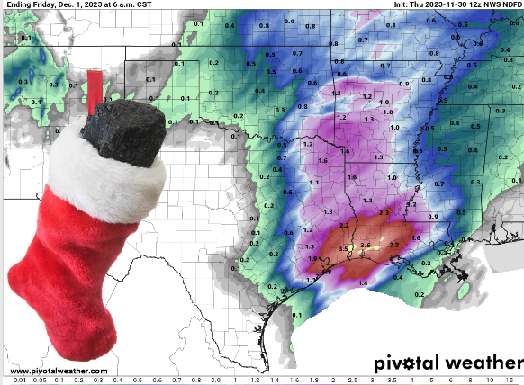 Well, November rain is not common in Oklahoma; we will still take the rain anytime we can get it! According to State Climatologist Gary McManus, we could always use more rain in November, “While we’re thankful for any precip that falls, we sure could use more. (Hence the lump of coal) And that’s the only precip I see in