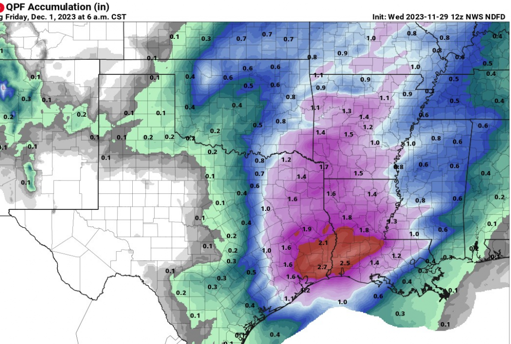 McManus says we will see a brief cool-down for the rest of today and tomorrow because of the clouds and rain. Rainfall amounts could be over an inch in some places while leaving out the Panhandle again. An isolated severe storm could also be possible today with the threat of quarter-size hail.