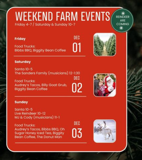 “Out here at the farm, we have food trucks and live Christmas music,” Wells said. “We will have Santa Claus and (live) reindeer, and just all kinds of fun games, toys, and outdoor games for the kids to play.”