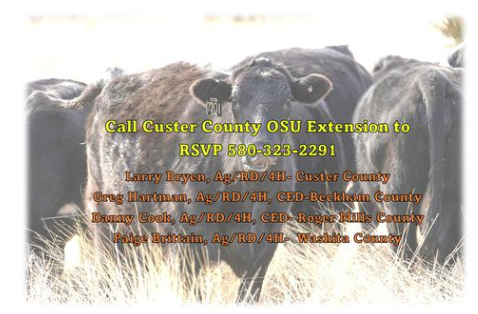 4 County Beef Seminar coming up Wednesday, January 17th, from 9 am to 12 pm at the Custer County Fairgrounds, 1738 US Hwy 183 in Clinton Oklahoma.