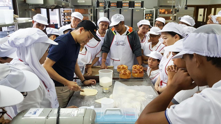 Ivan Goh (in blue shirt), shares information about U.S. wheat while teaching a baking course at the UFM Baking and Cooking School in Bangkok, Thailand.