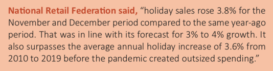 Retail sales continued to show strength climbing 0.6% in December, which was the largest increase in 3 months. Core retail sales, which exclude autos, gas, building materials and food services, gained 0.8% being the most since July.