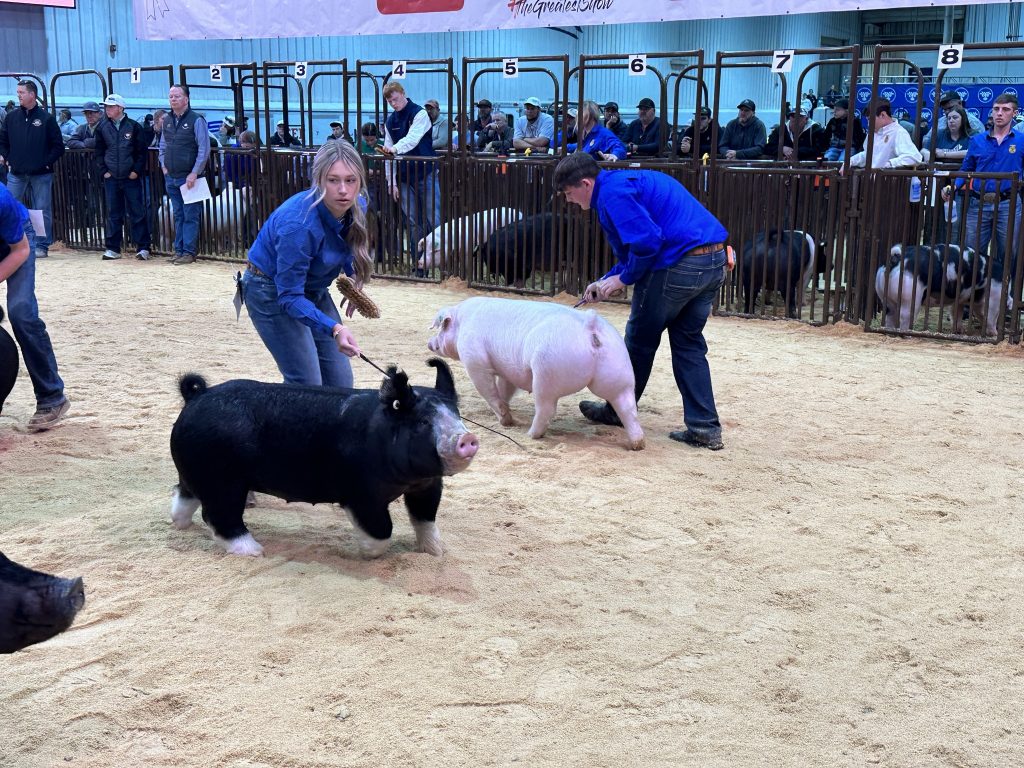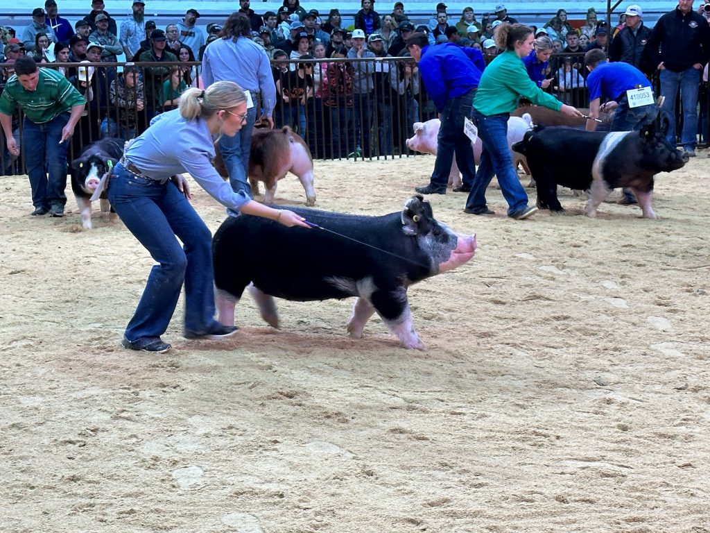 Just over a thousand purebred breeding gilts were competing for breed and overall honors Thursday and Friday- and when it came down to the nine breed champs on Friday afternoon, Madison Walker of Red Oak FFA took the Supreme Championship. She showed the Champion Berkshire Gilt on Friday that was then selected as the 2024 OYE Supreme Champion Purebred Breeding Gilt. Madison’s gilt will be one of the first gilts that will sell on Tuesday evening at the OYE Night of Stars Gilt Sale.