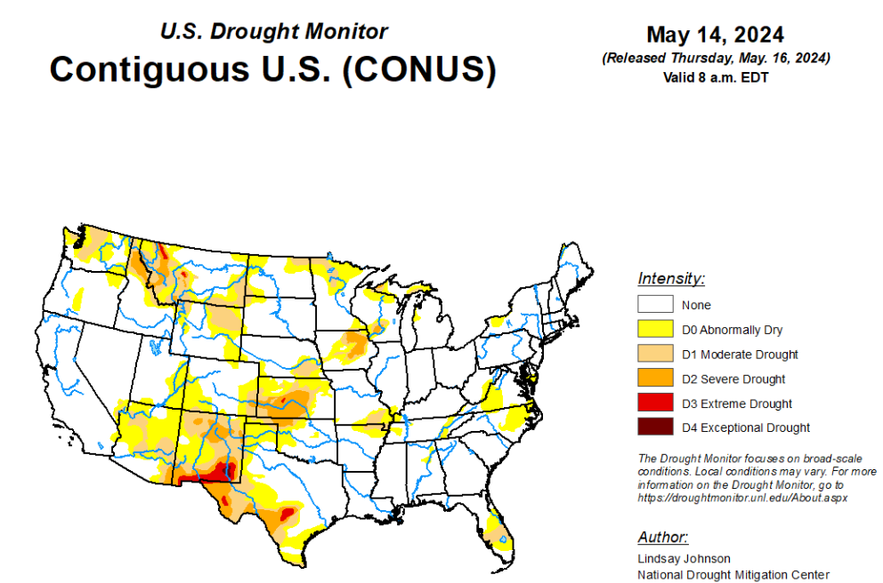 Abnormally dry or worse conditions are now at 32.64 percent, improved from last week’s 48.38 percent.