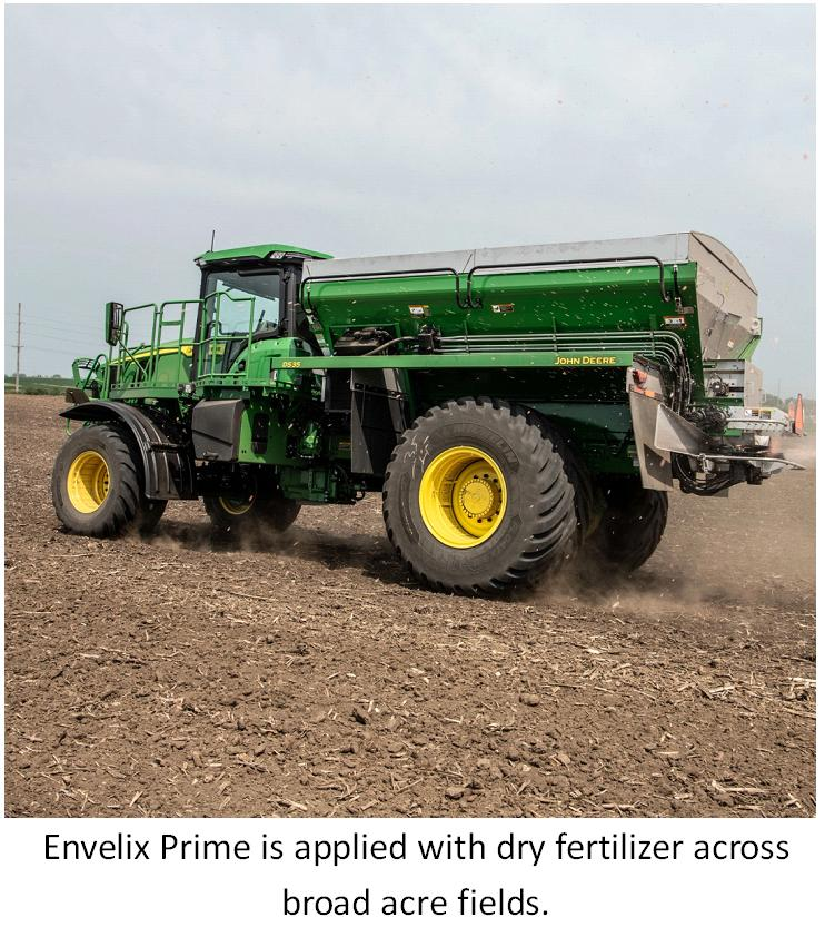 Envelix Prime mixes seamlessly with MAP, DAP & Urea, offering improved flowability and less bridging at application.