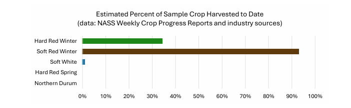 The HRW harvest is 34% complete with more than 300 samples in the lab for testing. The SRW harvest is winding down
