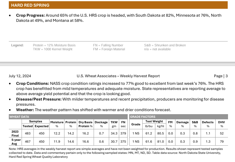 and currently grades a U.S. #2 SRW. The PNW continues to trend hot and dry as the SW crop matures and harvest gets