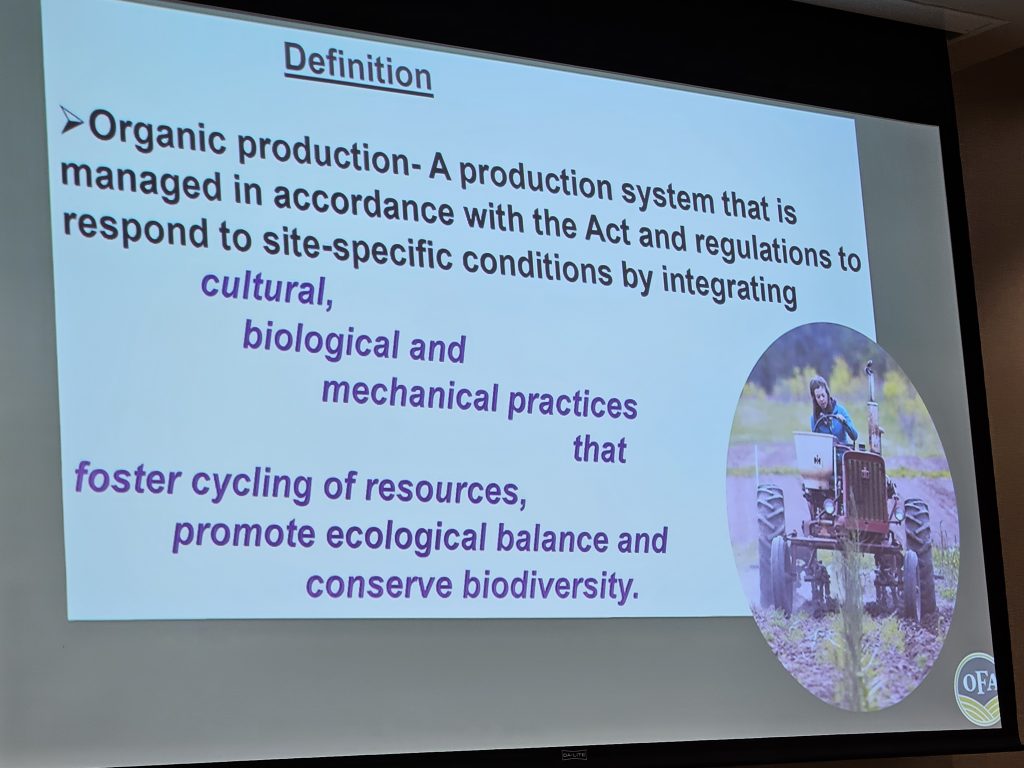 One such change is that organic farming is not an input substitution. “Although we have approved organic and synthetic inputs, we look at organic farming more as a management style that uses things like crop rotation and beneficial insect habitat, rather than just looking at what the organic herbicide exchange would be, because there really aren’t any,” she said.