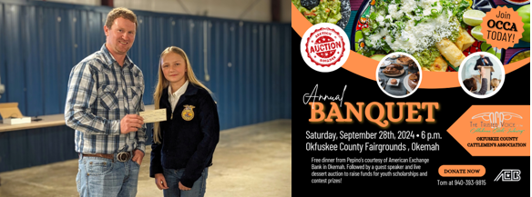 The Okfuskee County Cattlemen’s Association (OCCA) is pleased to announce its yearly fundraising event will take place on Saturday, September 28, 2024 at 6 p.m. at the Okfuskee County Fairgrounds.