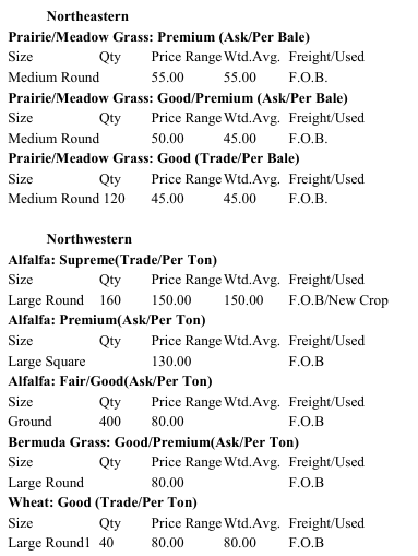 Trends: Alfalfa Large rounds & squares $130-$150 a ton – 2024 Grinding hay – No Trend