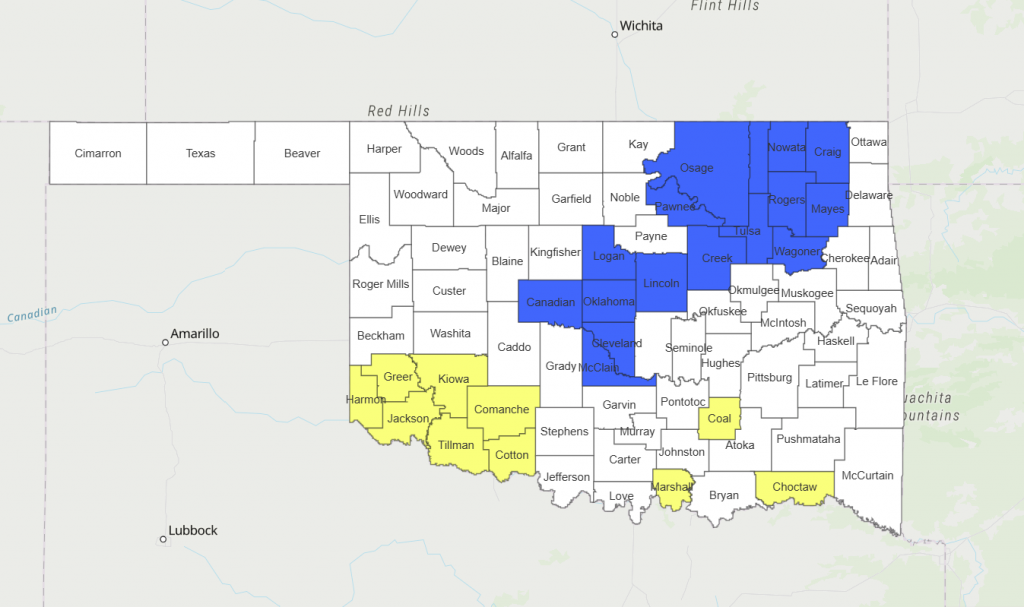 Oklahoma City and Tulsa metropolitan areas prompting a ban on open burning in the identified counties today.