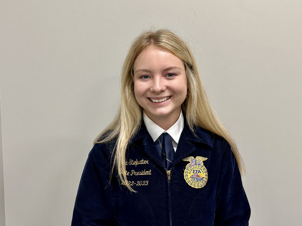 Stiefvater and 36 other National officer Candidates will be interviewing on the weekend of October 19th, then after the committee votes, there will be the first “cut” made in the national officer process on Monday night the 21st- about 50 percent. The process will continue after the first cut, until six final national FFA offices have been selected. Those six will be announced on Saturday afternoon, October 26th, during the last session of the convention in Indianapolis.