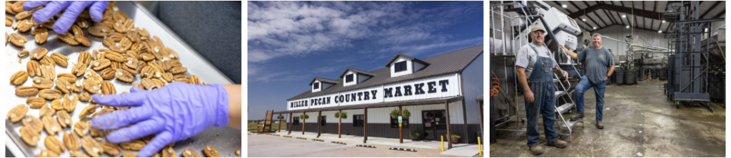 Brothers Jared and Justin Miller have built the sprawling pecan processing plant and storefront that complements their own pecan grove in a short 10-year span. The Millers created a state-of-the-art facility that transforms pecans from fresh-off-the-farm nuts to pecan halves and pieces that are used in confectionery items, baked goods and even enjoyed by the handful.