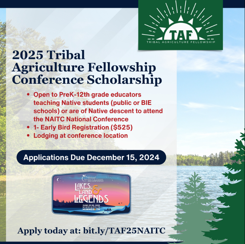 The 2025 Tribal Agriculture Fellowship Scholarship to attend the National Conference is now open! Applications are due December 15, 2024.