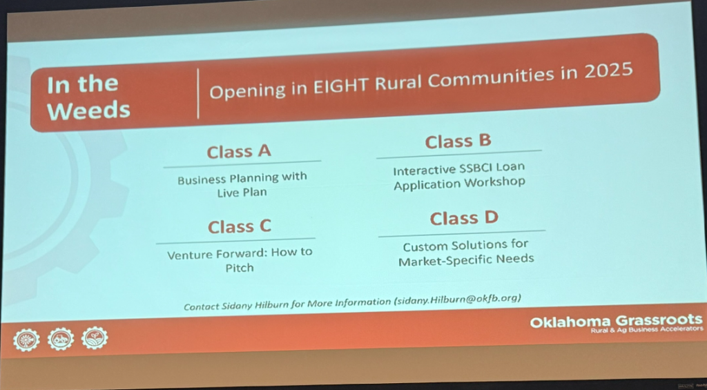 Many of the available programs will kick off in 2025. The AgCelerator Program opens for applications early in the year, and applications can be accessed on the Farm Bureau website. The Rural Entrepreneurship Opportunities program has applications available on launchruralok.com. Its application window opened in November and conferences will be available in February and March 2025. The Master Class series, comprised of four classes in eight different rural communities, begins taking applications in January 2025.