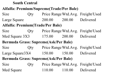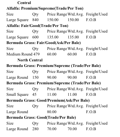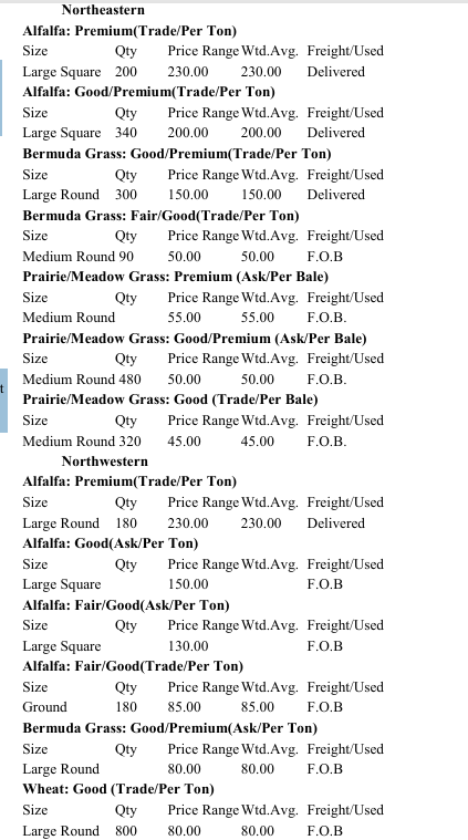 Trends: Alfalfa Large rounds & squares $130-$150 a ton – 2024 Grinding hay – No Trend