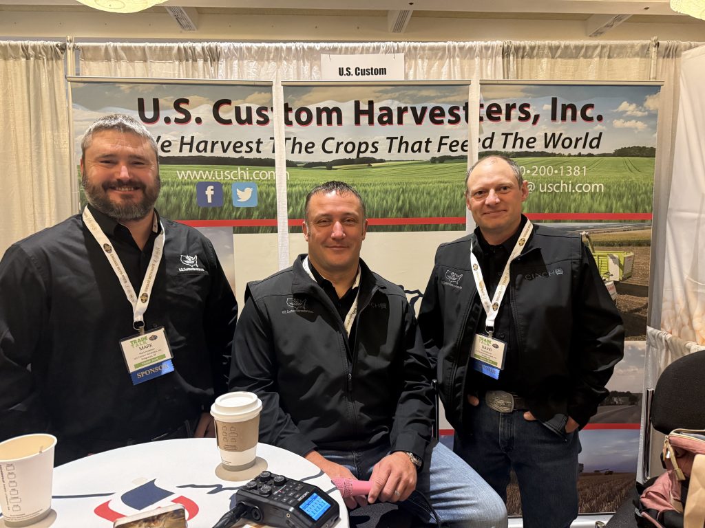 Farm Director KC Sheperd chatted with US Custom Harvesters President David Misener. The organization began in 1983 with a group of combine operators. It has since grown to include silage choppers, cotton pickers, and manure spreaders.