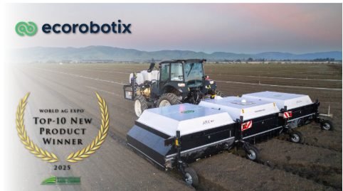 Ecorobotix, an AI company specializing in precision agriculture, is thrilled to announce its ARA Ultra-High Precision Sprayer has been recognized as one of the World Ag Expo Top 10 New Products for 2025. This prestigious honor highlights Ecorobotix’s innovation in AI-driven agricultural technology.