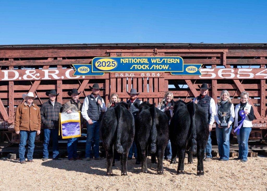 Reserve Champion Lim-Flex Pen: RODZ Mozart 166M, 2/8/2024, 56% Lim-Flex, sired by FWLY LHC Capital ET; RODZ Minister 128M ET, 2/22/2024, 54% Lim-Flex, sired by MAGS Aviator; RODZ Mickey 187M, 3/1/2024, 77% Limousin, sired by RODZ Fantastico 147F. Exhibited by Reynolds Land and Cattle, Sanford, Colo.