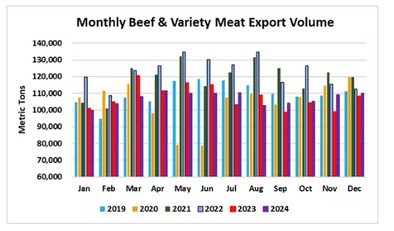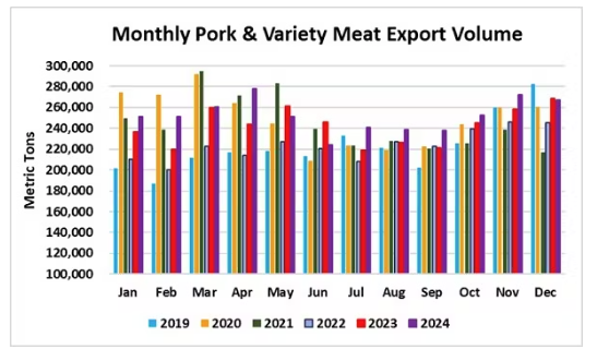 U.S. Pork Exports Record-Large in 2024; Beef Export Value Trends Higher
