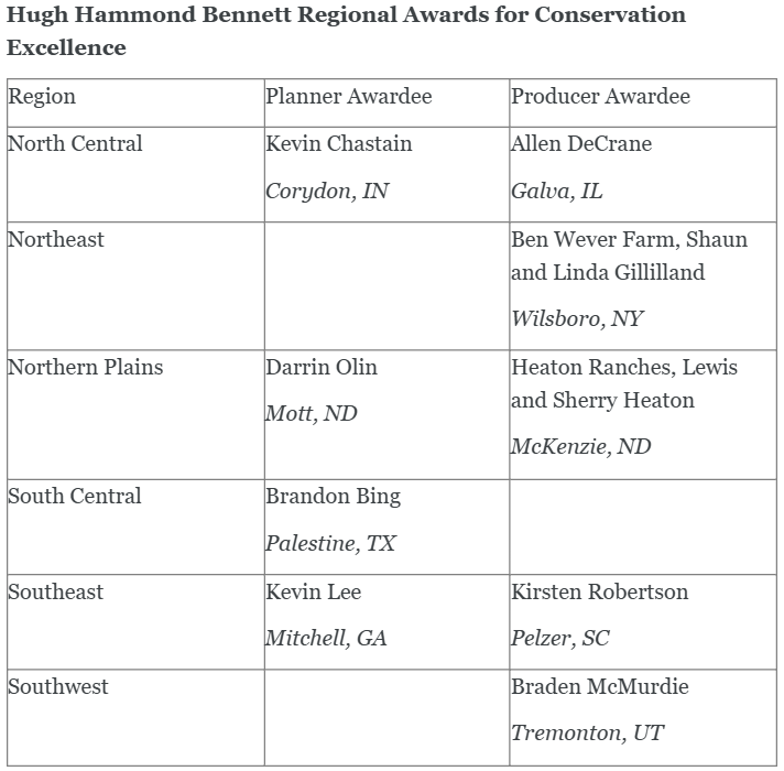 The National Conservation Planning Partnership’s (NCPP) Hugh Hammond Bennett Awards for Conservation Excellence honor the legacy of Hugh Hammond Bennett, known as “The Father of Soil Conservation.” National awards were presented to one planner and one producer who have demonstrated commitment to conservation planning, pioneered new approaches to planning, and advanced soil health adoption through civic engagement.