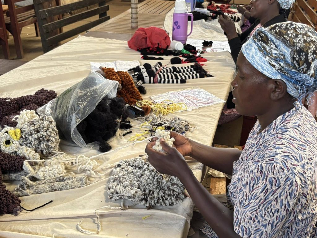 “The knit items are made at home from Tuesday through Friday and then come to this site to have their items inspected. Currently, Kenana supports 150 regular women workers, but has 622 spinners and weavers. This organization also provides the women with adult literacy, free meals for high risk, pregnant, and elderly women, financial literacy, and free healthcare and well-being.