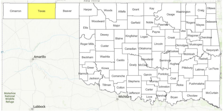 Statewide Discussion: A Fire Weather Watch is in effect for tomorrow, spanning much of western Oklahoma. Within this Watch Area, the highest concern will reside in the Oklahoma Panhandle and northwestern counties, where composite fuel moisture continues to support potential for large fire activity (<300 Acres) while significant fire potential (>5,000 Acres) remains low.