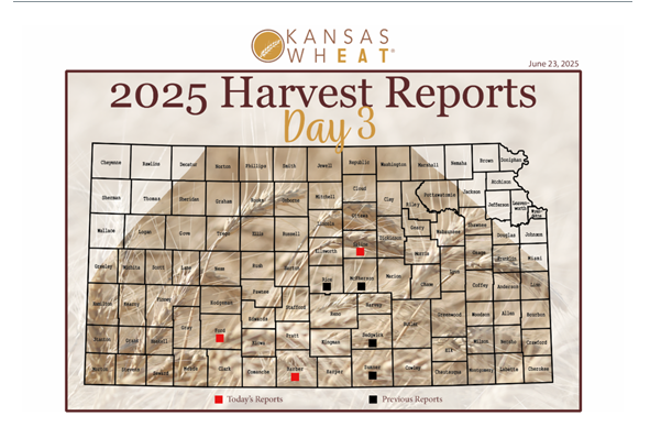 The 2025 Harvest Report is brought to you by the Kansas Wheat Commission, Kansas Association of Wheat Growers, Kansas Grain and Feed Association and the Kansas Cooperative Council. To follow along with harvest updates on social media, use #wheatharvest25. Tag us at @kansaswheat to share your harvest story and photos.