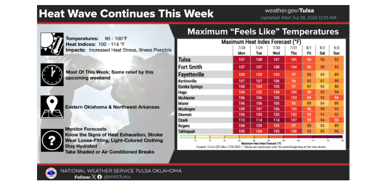 The state has been under the grip of a relentless heat wave, with some areas experiencing extreme conditions. Grandfield, for example, has logged “10 consecutive days at or above 100” degrees. Across much of Oklahoma, heat index values have been consistently in the triple digits for two straight weeks, a trend expected to continue for the next couple of days before Thursday’s much-awaited change.