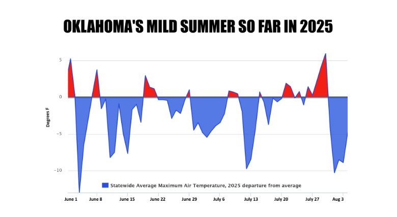 After a pleasant, unseasonably mild stretch of weather, Oklahomans are being reminded that it is, in fact, still August. According to State Climatologist Gary McManus, the state is transitioning back to a more typical weather pattern after a “burst of late-September weather” that saw temperatures drop over the past week.