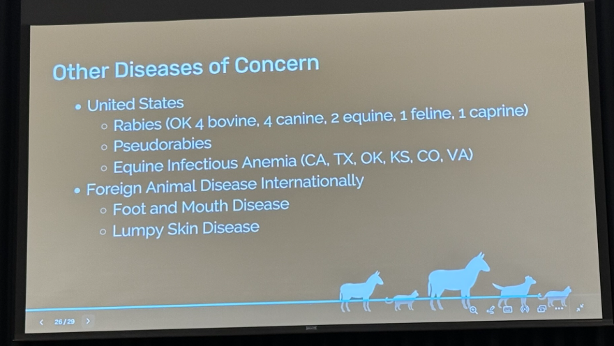 Dr. Biggs also addressed the increasing number of rabies cases in Oklahoma, with four cases each in bovine and canine species this calendar year, along with several cases in equine and goats.