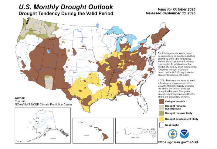 The Climate Prediction Center (CPC) reinforced these concerns, forecasting that drought development is “likely” across the southeastern two-thirds of Oklahoma by the end of October.